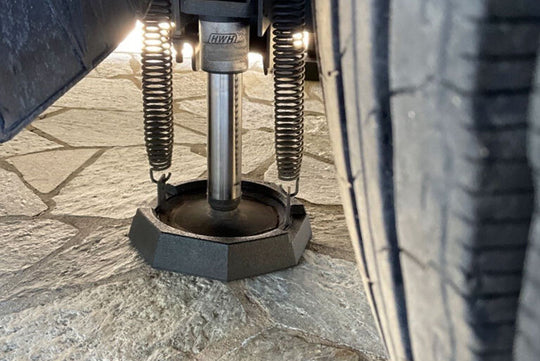 RV SnapPads are the World's Only Permanent Jack Pad, meaning no more placing, retrieving or storing plastic or wood blocks to level.
