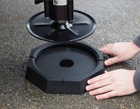 Placez simplement le SnapPad sous le pied métallique du camping-car. Demandez à un ami de vous aider. Les SnapPads sont plus faciles à installer à deux.