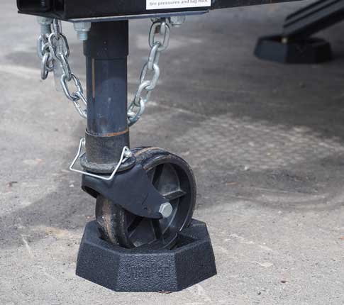 Made from the same rugged recycled rubber that SnapPads are famous for, The Base is a universal stability-enhancing solution that fits Andersen Hitches 12.5" diameter Trailer Jack Block® & Stromberg Carlson's 12" diameter Base Pad Extreme, as well as a wide variety of standard 8 ½” X 8 ½” stacker blocks.